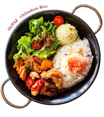 野菜と鶏肉をトマトソースでじっくり煮込んだスペインの郷土料理のチリンドロンをヘルシーな雑穀米で楽しむ。